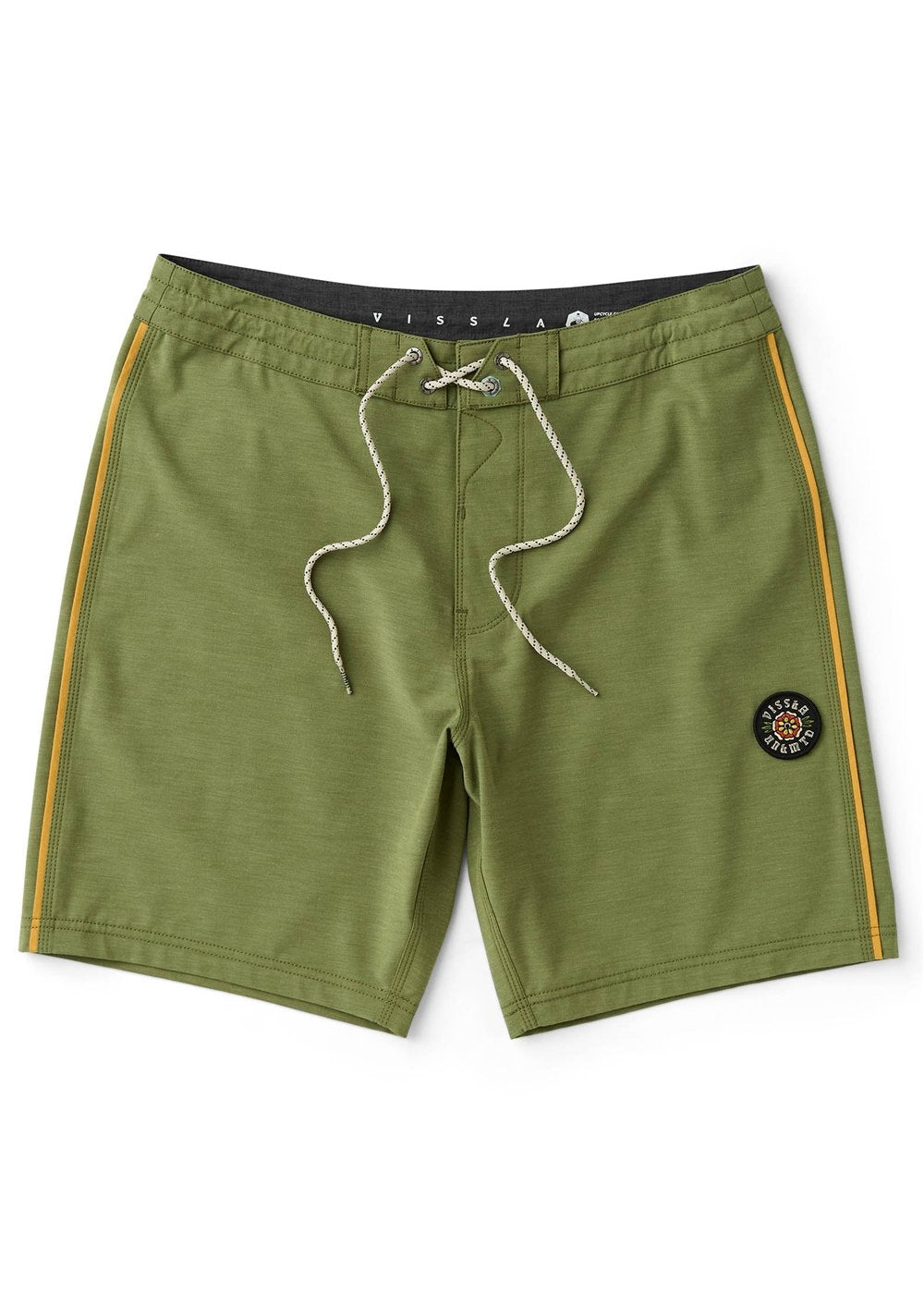 It’s the skeleton key of the modern surf trunk, unlocking all the doors. Measuring 18.5 inches in length, the Solid Sets have been tested in every condition, never falling short of the optimal level of performance. Our most proven 4-Way stretch boardshort to date, made from the most comfortable blend of upcycled coconut fibers, recycled polyester Repreve, and cotton. Features a caliper scalloped hem and back pocket with an integrated key rope. Each colorway has its own novelty Vissla embroidered patch at the side. Enjoy the shred.